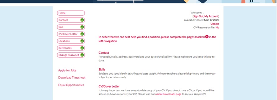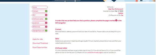 It really helps us to help you if you ensure that a CV is uploaded as part of your registration process. This will save us asking you a lot of questions, and will help to direct us in terms of what suitable placements we may be able to offer you. If you need help to put a CV together, we have a template you can use on our useful downloads page.