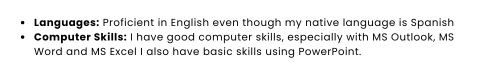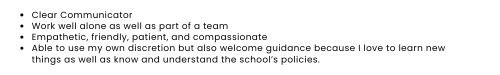 6. Key Skills: Highlight skills such as clear communication, teamwork, empathy, and technical abilities etc. For example: